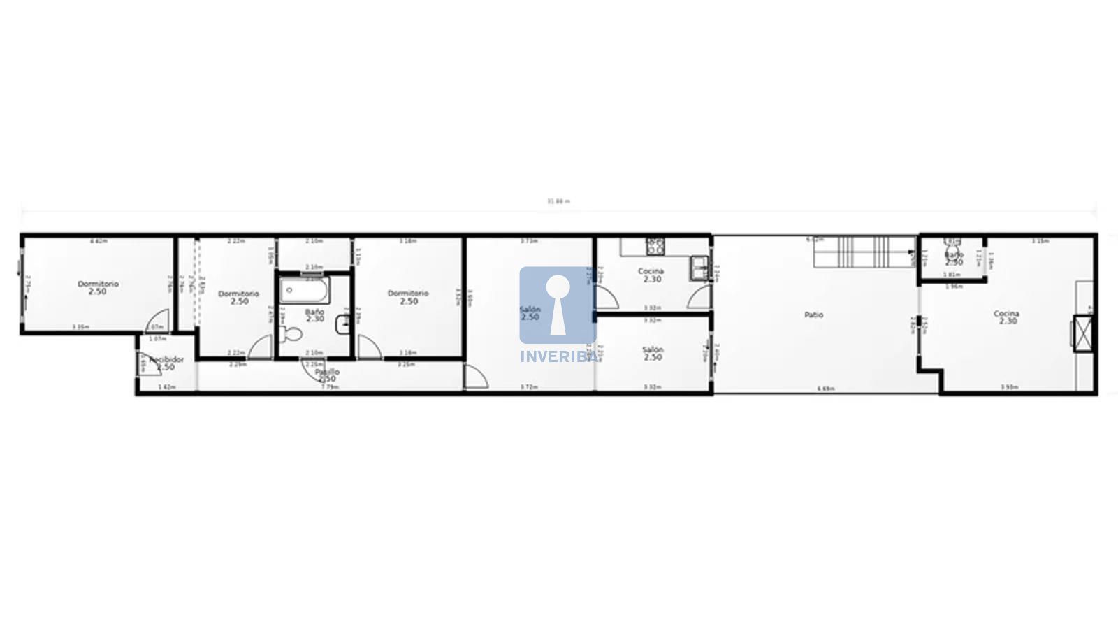 La vivienda consta de 154 m² construidos distribuidos en salón-comedor, 2 cocinas, 3 habitaciones, 2 baños y terraza